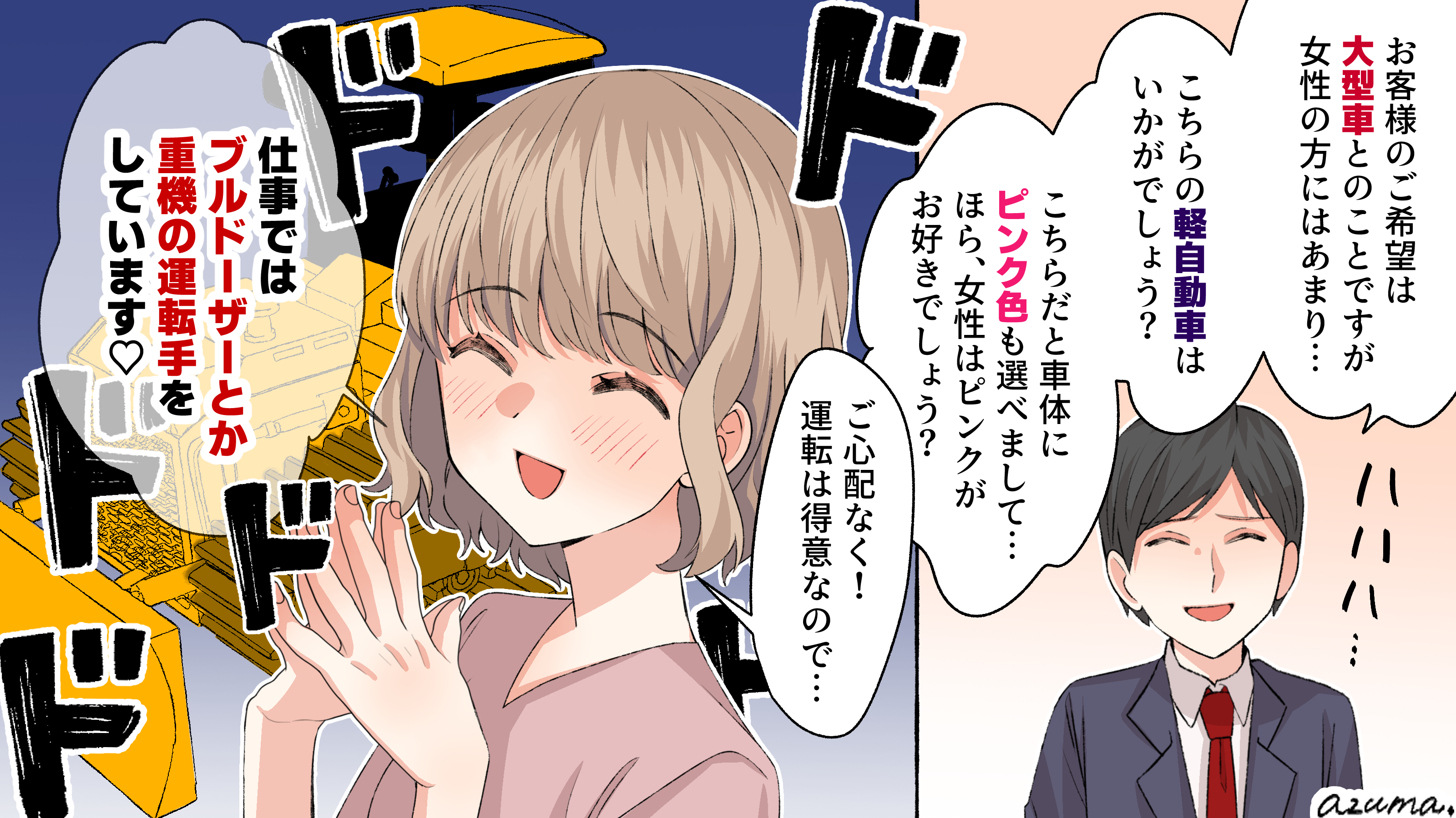 女はピンクの軽? 男尊女卑のディーラーを小柄な女子が撃退! -