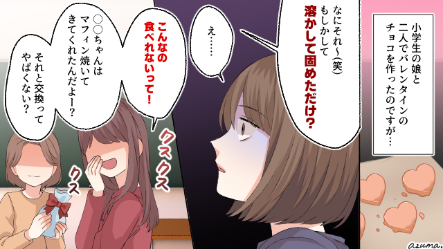 思わず『そんな子と友達やめな?』と言ってしまいました。私がもっとお菓子作りが得意だったら、娘にそんな思いさせずに済んだのに……とも思ったけど、小学生でそんな言い方をする子とは普通に仲良くしてほしくない……。