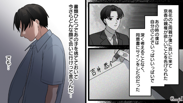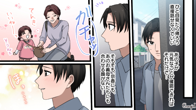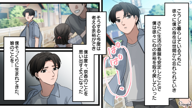 ▽ 京香の親権を放棄し、心機一転、新しい人生を歩み出した恭介。ですが、手放した京香のことがどうしても気になり、会いに行きます。そこで見たのは、幸せそうな娘の姿で……。