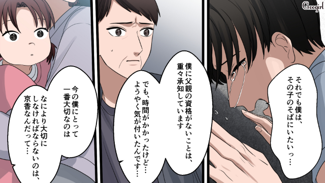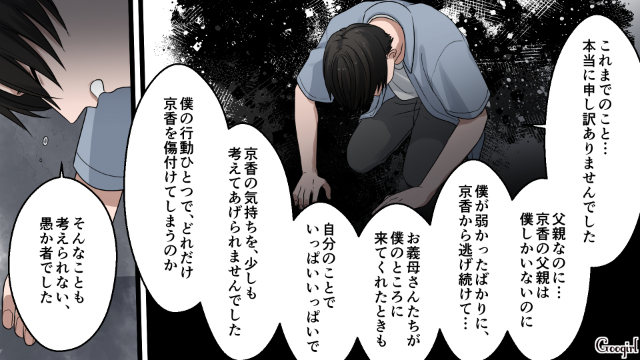 ▽ 京香を一目見るだけのつもりが、無垢な笑顔に自分の気持ちを思い知らされた恭介。土下座をして許しを請いますが、果たして、どうなるのでしょう。