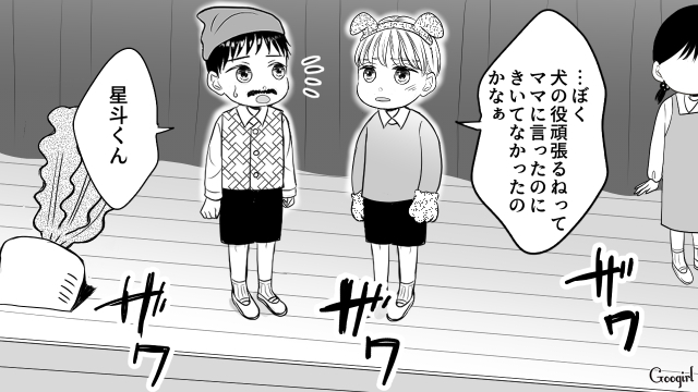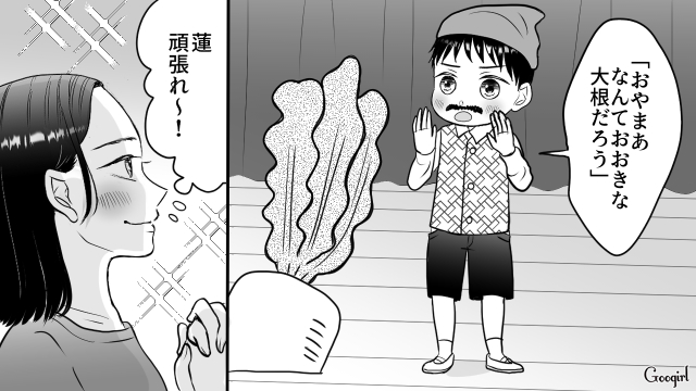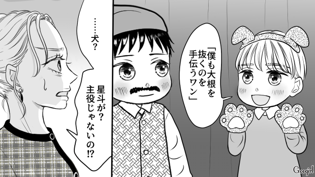 ▽ 子どもたちが一生懸命演じる「大きな大根」。しかし、突然騒ぎ出した麗子のせいで会場は騒然となり、舞台の空気は一変してしまいます。