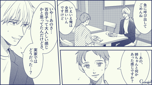 ▽ 百合子の実家の家庭環境を思い出し、そういえば男性陣もしっかり家事をしていたな!? と気が付いた隆司。百合子は実家でそう過ごし、どう育ったのか。弟の裕太に相談してみることにしたのですが……。