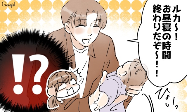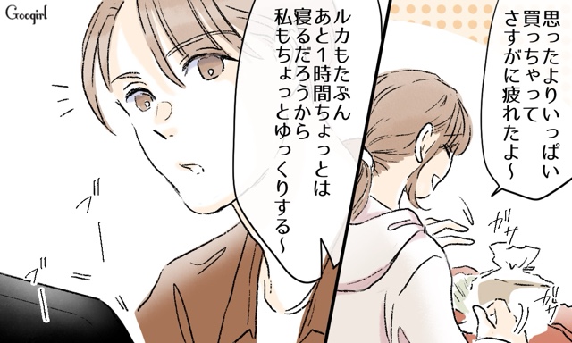 ▽ ピクニックを終え、買い物にも行き、疲れて帰ってきたミツキ。お昼寝の時間ということもあり、ルカはぐっすり寝ています。ちょっとの間休憩しようと話すミツキをよそに、いきなりサトルがルカを起こしてしまいました。
