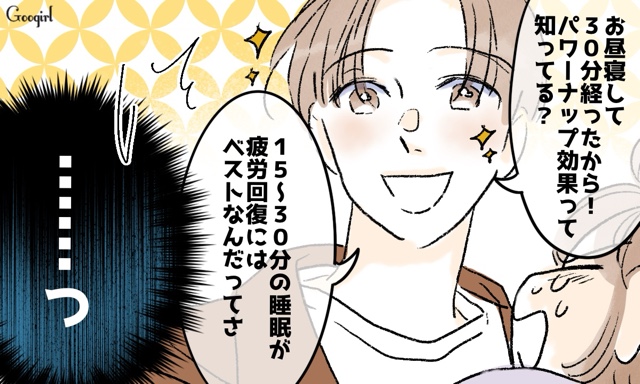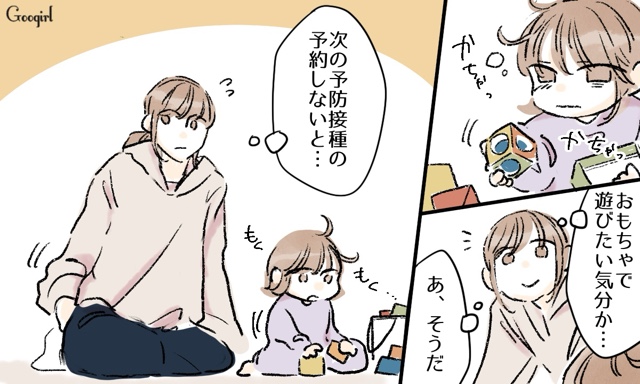 ▽ 普段2時間近く寝る1歳の娘の大事なお昼寝を、30分がいいんだって! とネットで拾った大人の睡眠情報を鵜吞みにしてサトルはルカを起こしてしまいます。1人遊びを始めたルカを横目で見ながら、スマホで予防接種の予約をしていると、今度はスマホは子どもの前で触らないほうがいいと言い出しました。