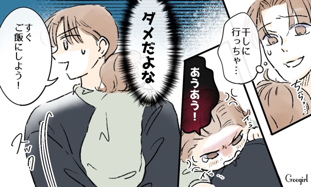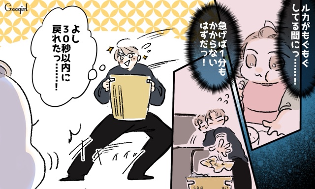 育児に強いこだわりを持つ夫サトルに疲れきっているミツキは、交代で1泊2日の旅行を提案します。2日間完璧に理想の育児を自分がすれば、ミツキの努力が足りてないことがわかるだろうと意気込むサトル。ですが、大きな声を出したことでルカを泣かせてしまい、おもちゃの袋を放置していたせいでルカが口にビニール袋を入れそうになってしまいました。