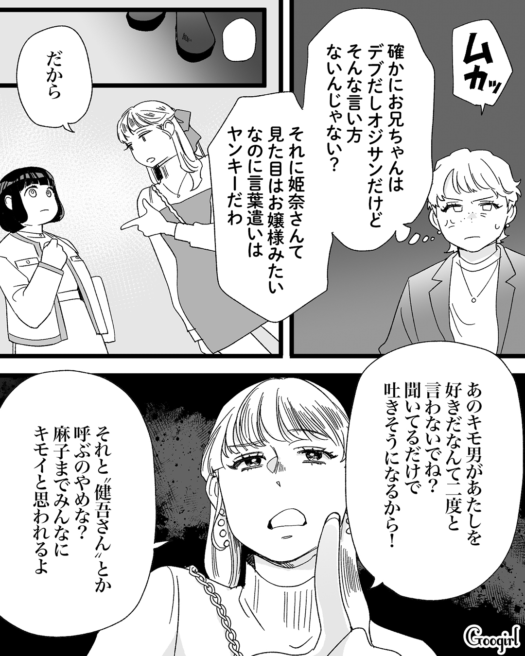 ▽ 麻子と姫奈の話を盗み聞きしてしまう美月。姫奈が健吾のことをボロクソに言うのを聞いて、かなり腹立たしく思ったようですが、それは麻子も同じようですね。しかし、まさか姫奈がこんな性格だとは驚きです。