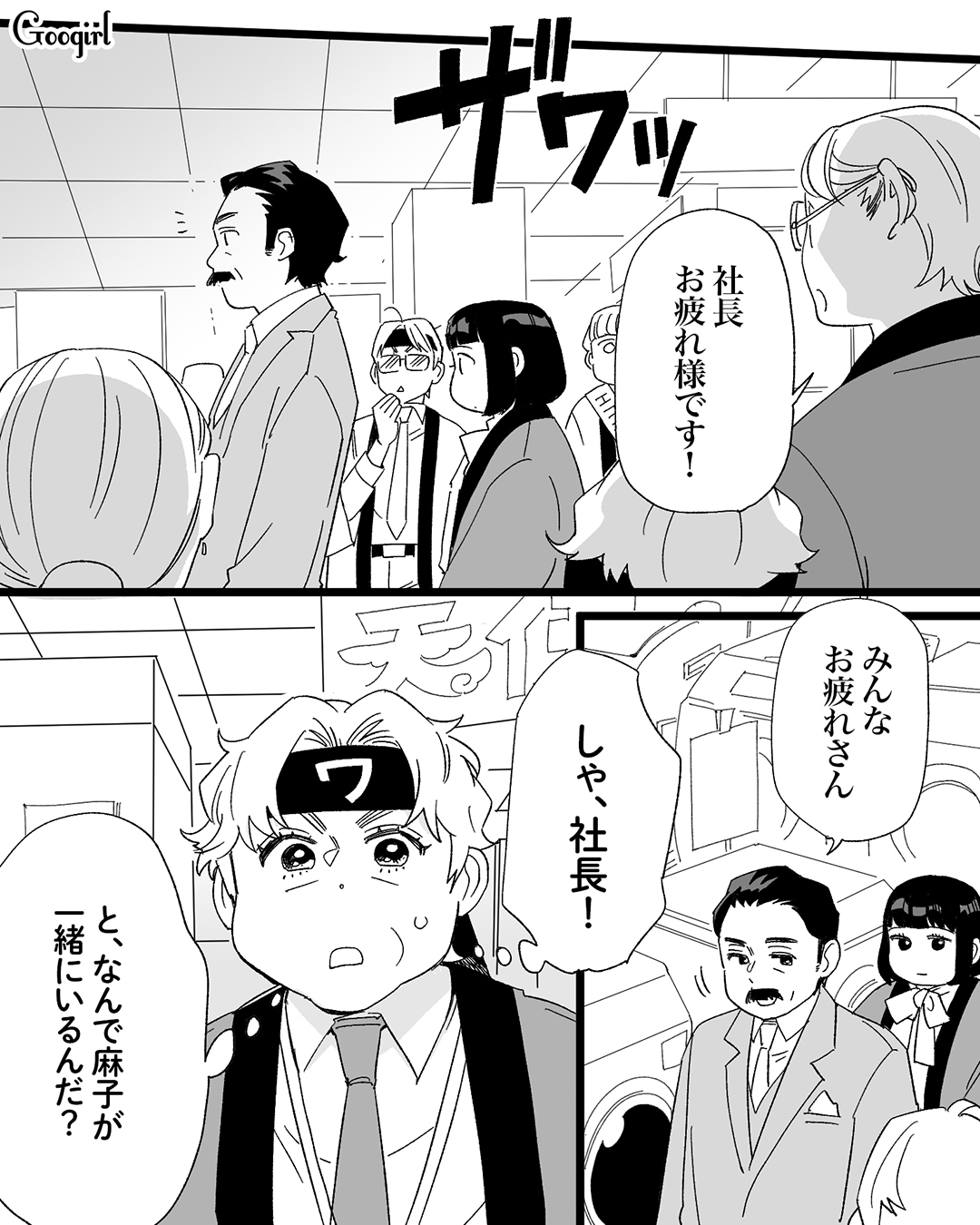 ▽ なんと、麻子はワッショイ電気社長の娘だったのです! あ然とする健吾や社員たちですが、それだけでなく、退職してイタリアへ行くと宣言されて……どうする健吾?