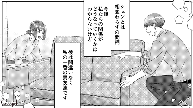 ▽ ご機嫌取りに必死なケントは残念な末路でしたね……。最初から浮気やオープンマリッジなんかせずに、ミユを大事にしていたらこんなことにはならなかったのに……。シュンとはいい関係が続いているようです。心を許せる友人がいるって大事ですよね!