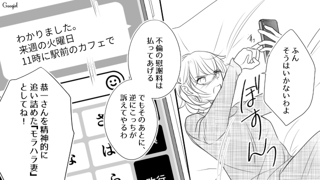 ネットストーキングの末、ついに妻・玲子のSNSアカウントを特定した真梨香。真梨香は宣戦布告のDMを送信します。修羅場必至の状況ですが、果たして玲子の反応は……?