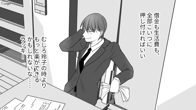 ▽ 玲子に捨てられた恭一でしたが、そこに反省の色は一切ありませんでした。むしろ真梨香という「新しい財布」を手に入れたことに味を占め、楽をしようと企んでいます。これから始まる新婚生活、果たしていったいどんな毎日が待っているのでしょうか?