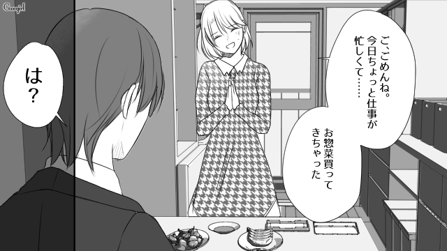 「私が彼を癒やし、完璧な家庭を築く」。そんな真梨香の思い描いていた「丁寧な暮らし」は、共働きという現実の前に早くも限界を迎えていました。疲労困憊の末、食卓に並べられたスーパーのお惣菜。それを見た恭一の口から飛び出したのは、真梨香の耳を疑うような冷酷な言葉でした。