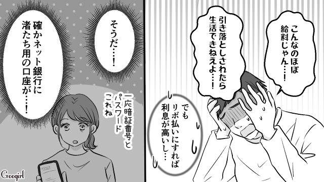 ▽ 30万円ものクレジットカードの支払いに追い詰められた義則は、里奈に相談もせず、子どものネット銀行から貯金を勝手に引き出します。一方里奈は、子どものためにコツコツ貯めた30万円が、消えていたことに気づきました。