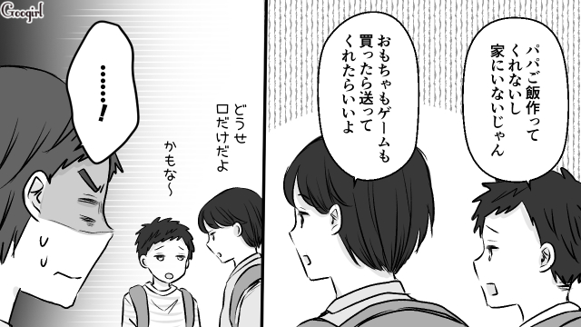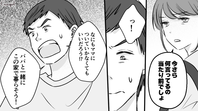 単身赴任を始めて3か月。義則は一度も帰省せず、休日は趣味三昧! 義則の1年の単身赴任が終わる前に、充分な収入を得られるようになった里奈は義則に離婚届を叩きつけます。渚と颯真を味方につけて、離婚を回避しようとする義則。子どもたちからの冷たい言葉と視線を受けて、自由に生きすぎた自分の行動が招いた結果に、ようやく気付き始めますが、もうすでに遅すぎて……。