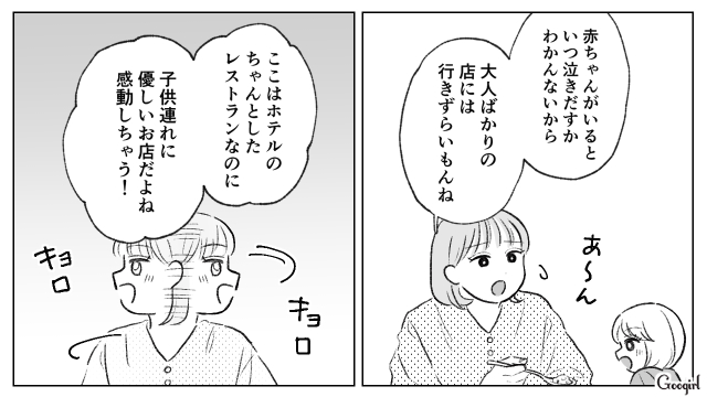 最初はテラスレストランを希望した京香。やっぱり、本当は常識あるママなのかな? と思った途端にセレブを自覚してしまった京香。なんというか……のせられやすくて単純な人?