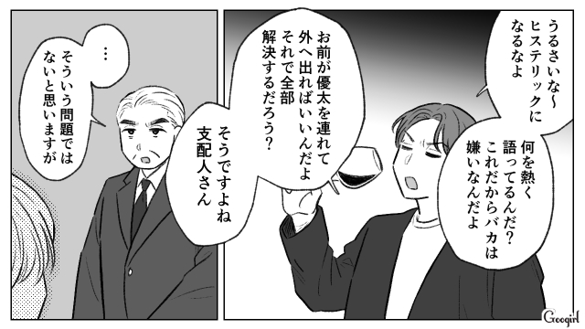 堂々と高級フレンチへ入店した高瀬家ですが、やはり優太が泣き出してしまいます。それだけでも大変なのに、壮太と京香の夫婦ケンカまで始まって?