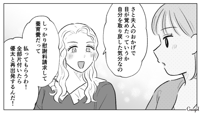 ▽ 慰謝料と養育費をしっかりゲットして、優太との未来を歩み始めた京香。ずっとやりたかった仕事へ本格的に復帰した愛美。それぞれが、それぞれに、幸せがあると信じて自分達の道を突き進みます。