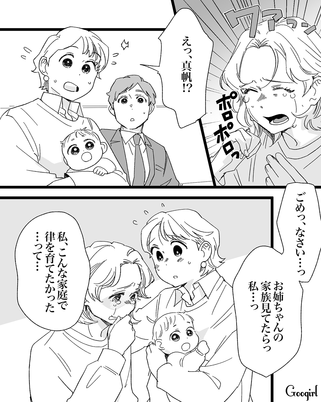 姉の家で静養中の真帆。姉家族の姿に触れて、その幸せな光景にどっと涙が溢れてきました。そんなとき真帆は信じられないものを見てしまって……。