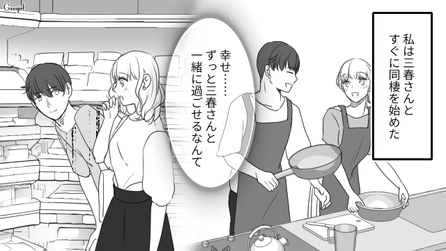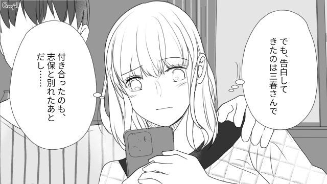 立花は親友である志保の彼氏、三春に思いを寄せ、転職までします。その行動に志保が違和感を覚える一方で、三春も志保と立花の間で揺れていました。三春に別れを告げられた志保は二人が裏切っていたのではないかと疑いますが、三春は立花への気持ちを認めつつ浮気を否定しました。三春に告白された立花は、ただ二人の未来に幸せを感じるのでした……。