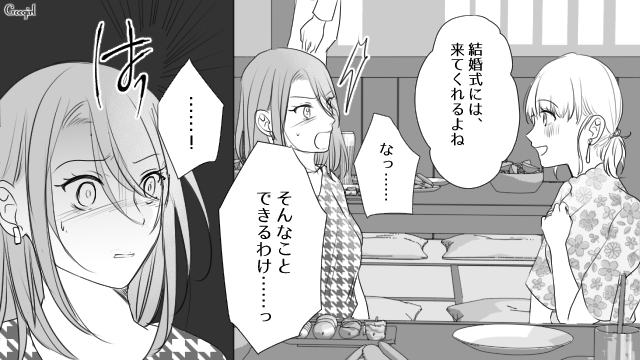 ▽ 立花は志保に結婚式への参加と友人代表のスピーチを頼みます。その異常さに、志保はかつて親友だった立花が本当に自分の知っていた人物なのかと震えます。立花は三春に「志保が来てくれるか不安」と漏らしますが、三春は「元カレの結婚式には来ないだろう」と答えました。裏切ったのは自分の方なのに、立花はなぜ志保との友情を疑わないのでしょうか……。