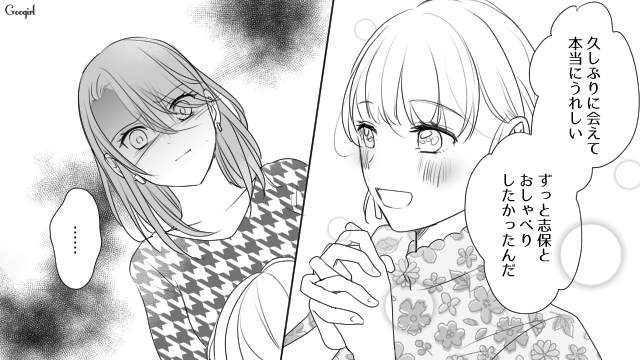 親友・志保の彼氏である三春に思いを寄せ、転職までして近づいた立花。志保と別れた三春は、すぐに立花との同棲を始めます。幸せな日々を送る一方で、志保とは音信不通のまま。半年後のプチ同窓会で再会した立花は、志保の前で三春から贈られた婚約指輪を無邪気に見せてしまうのでした。