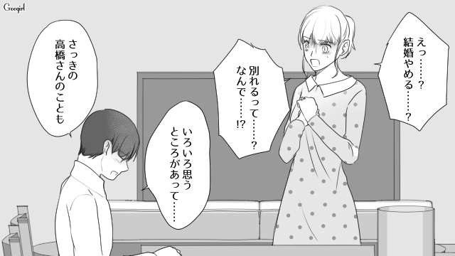 料理教室の気になる存在であるアシスタントの高橋との相合傘を見られても、立花に罪悪感は全くありません。高橋の態度を見て、恋愛感情はないのだと安心する三春でしたが、婚約者が迎えに来たのにもかかわらず明らかに肩を落としている立花を見て、立花のヤバさに気づき、別れを切り出しました。