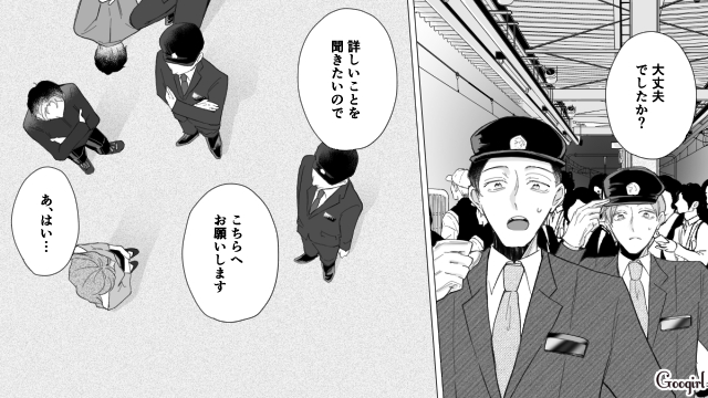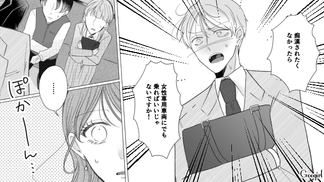 ▽ 痴漢された女性の前で、痴漢されるような服を着ているのが悪いと言ってしまった直也。周りからの視線にいたたまれず、逃亡を選びます。その様子を後輩女子、源ちゃんがしっかり見ていました。
