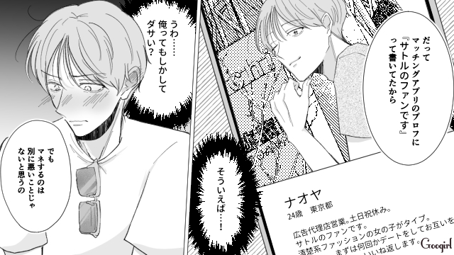 サトルのコーデを全身真似していることを笑われ、さすがに恥ずかしさを感じていると、元カノの木乃香と、電車で痴漢にあっていたのを見捨てた亜由美に遭遇します。亜由美だけではなく一緒にBBQを楽しんでいた人たちにもドン引きされてしまう直也ですが、まだ自分の考えが悪いとは気づいていません。木乃香との再会に運命を感じますが、木乃香に「キモイ」と、心からの軽蔑の目で見られてしまい……!?