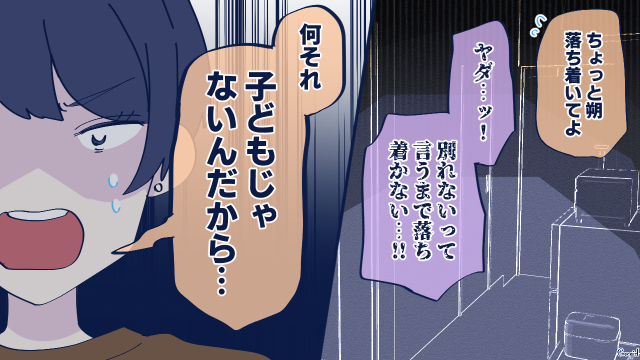 ▽ 別れ話で、駄々っ子みたいにかんしゃくを起こすなんて……朔とは別れることにして正解ですね。実家に帰った里奈を、朔はすぐに追いかけてきたようですが……。さて次回は最終話です!