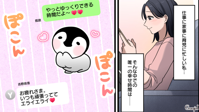 仕事に家事に育児に、毎日忙しくて不平不満の日々を送る沙紀。そんな中、唯一楽しみなことがあるようで……。