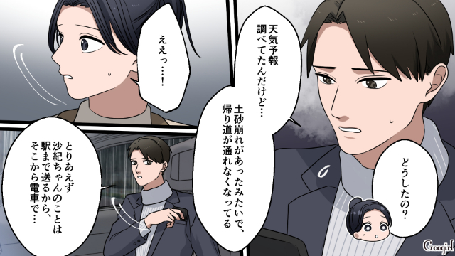 週末。沙紀はひとりで出掛けて、直弥とタケル父子でお出かけをすることにしました。でも突然の大雨で……。その頃沙紀はどうしていたのでしょうか?
