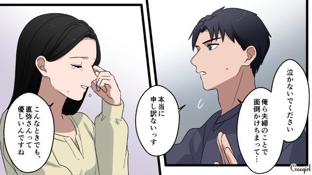 深夜になっても帰ってこない沙紀を心配する、夫と親友。けれど沙紀は、自分のことばかりでまるで悪びれる様子もありません。心配した親友の清香は、夫の直弥と直接話そうと向かって……。