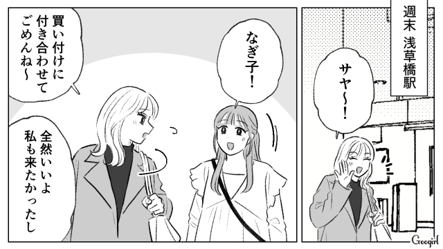 ▽ なぎ子と楽しくショッピングをしていたサヤ。そこへ、秀美から着信があります。あまりいい予感はしませんね。一体なんの用だったのでしょうか?