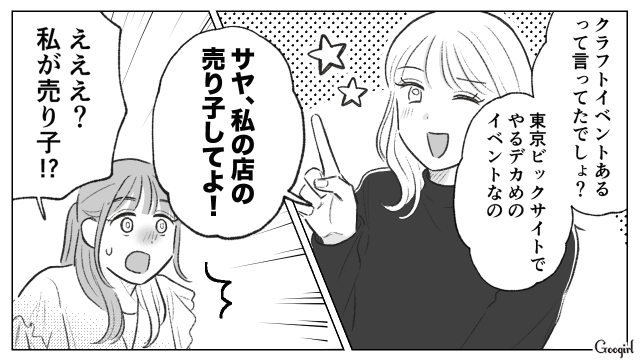 ▽ 現状を諦めているサヤを放っておけないなぎ子。サヤにクラフトイベントの売り子をするよう依頼します。一体どういうつもりなのでしょうか?