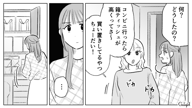 ▽ 自分の作品を認められ、しあわせな気持ちでいっぱいのサヤ。しかし、そこへ秀美がやって来ます。箱ティッシュをもらいにきた秀美は、サヤの作ったキーホルダーを手に取りますが――?