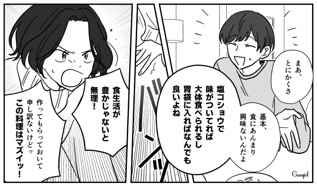 ▽ 食にお金をかけたくない男VS食にお金をかけたい女。この2人が一緒に暮らすとなると苦労しそうですね……。