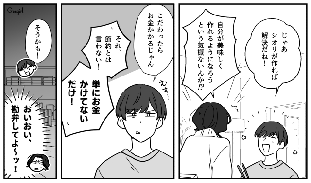 本日は「『自炊すれば安く済むだろ?』生活費をケチる夫に現実を見せた出来事」第3話をお届けいたします。