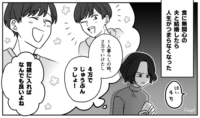 本日は「『自炊すれば安く済むだろ?』生活費をケチる夫に現実を見せた出来事」第4話をお届けいたします。