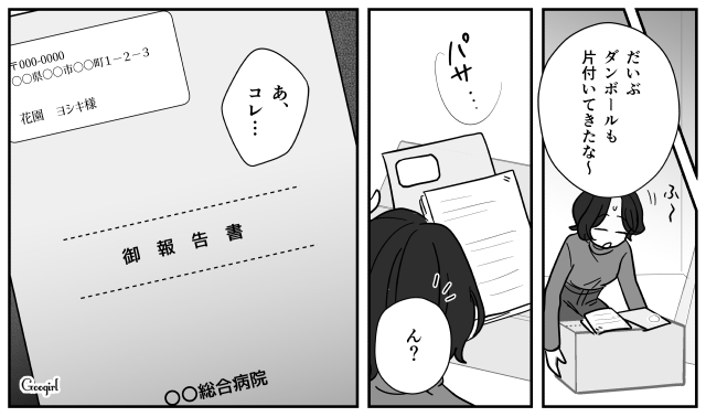 ▽ 結婚して早々に暮らしにくさを感じ、ストレスをためている様子のシオリ。部屋で見つけた書類は一体何なのでしょうか……?