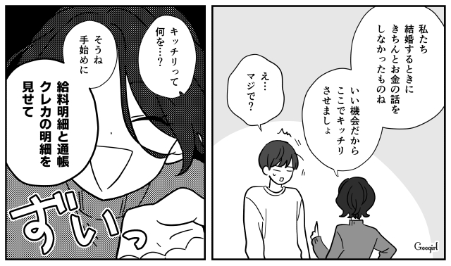 結婚すると、生活環境や生活リズムなど、ありとあらゆるものが変化します。独身の頃、自分の好き勝手にできていたことが突然できなくなると、ストレスもたまりますよね。相手の価値観とうまくすり合わせないと、しあわせなハズの新婚生活で地獄を見ることも……。新婚ホヤホヤのヨシキは、シオリに生活費として4万円を渡します。あまりの少なさに驚愕するシオリ。「節約は子どものため」と言うヨシキですが……?