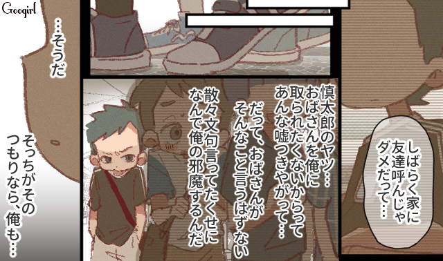 ▽ 自分の母親からの愛情を諦めた代わりに、慎太郎の母親を新しく自分の母親にしようと画策する彰斗。しかし、当然というべきか、その願いは叶いません。