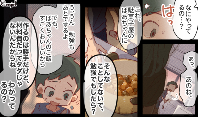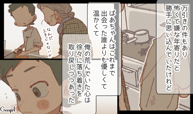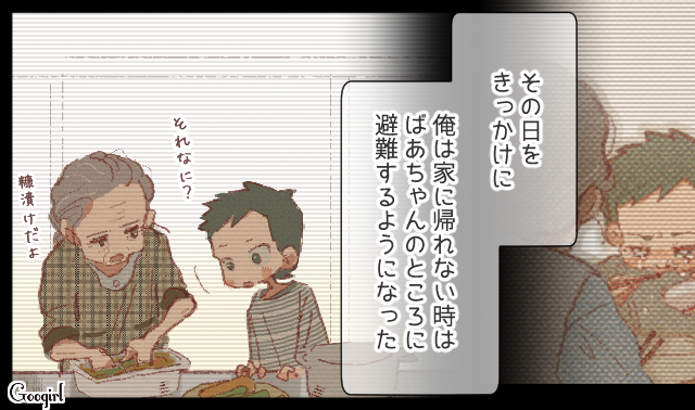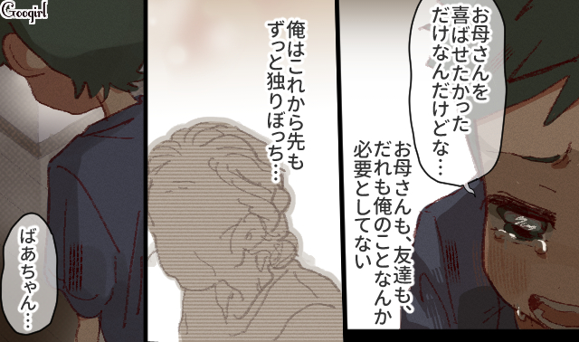 ▽ 母親から拒絶され、おばあさんに救いを求める彰斗。優しいおばあさんの温もりに、抑えていた気持ちが一気に爆発します。