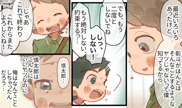 ▽ 駄菓子屋で慎太郎と偶然会ったことで、仲直りすることができた彰斗。しかし幸せな時も束の間、さらなる地獄が待っています。