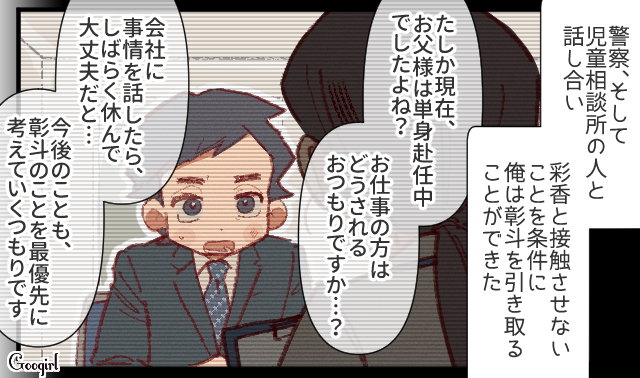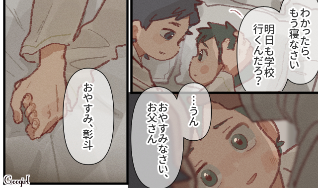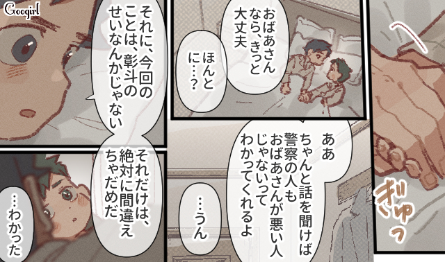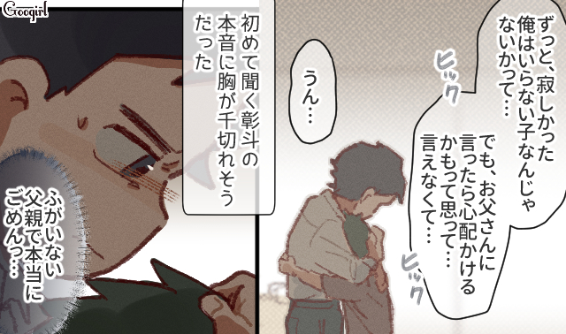 ▽ 警察を後にし、ホテルで2人の時間を過ごす父と息子。直哉の登場で、ようやく彰斗の生活にも希望の光が見えました。