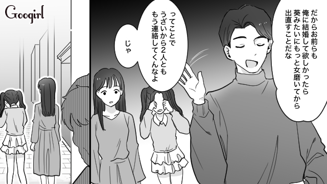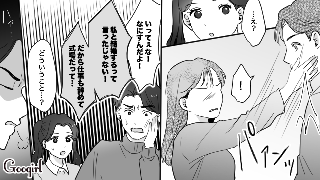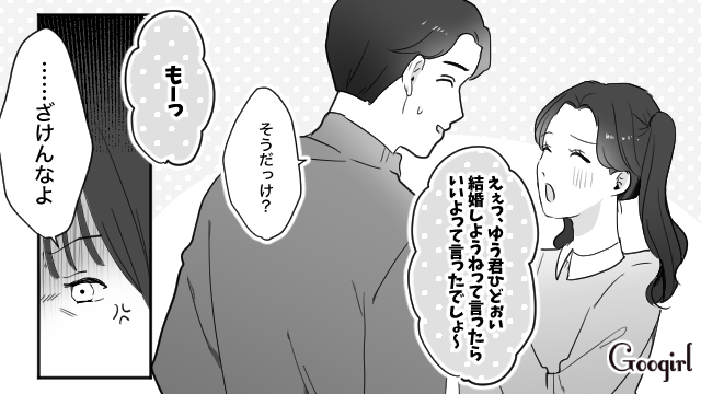 ▽ 結婚へまっしぐら! とウキウキの花音でしたが、優成の浮気現場に遭遇し、そこで優成の本性を知ることになります。優成がクズだということは、婚約者の妹と浮気をする時点でわかりきったことだったはずですが、そのことに花音は気付けませんでした。