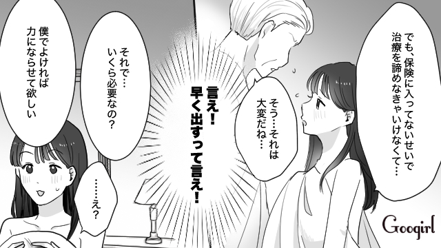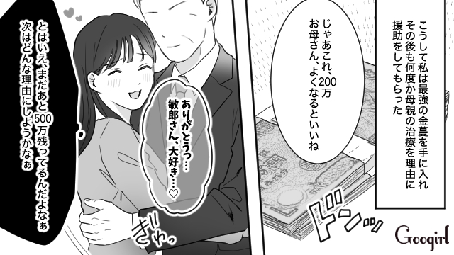 ▽ 不倫の慰謝料を肩代わりさせる相手を見つけるべく、マッチングアプリにのめり込む花音。そこで神部敏郎という男性に出会い、援助をしてもらいますが……。