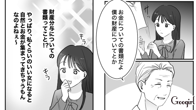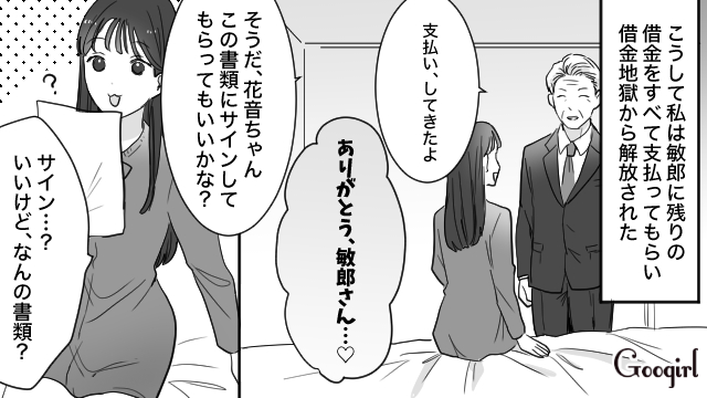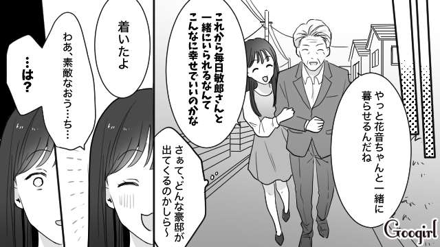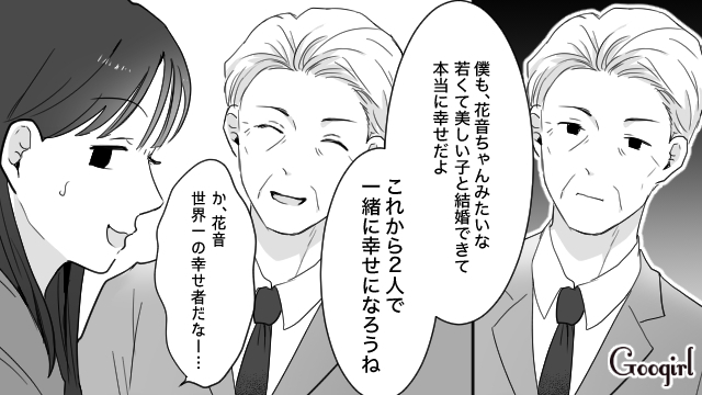 ▽ 咄嗟についた嘘のせいで、敏郎と結婚することになってしまった花音。しかし敏郎の資産を考えると、むしろラッキーだったのでは、と思い直しますが……。