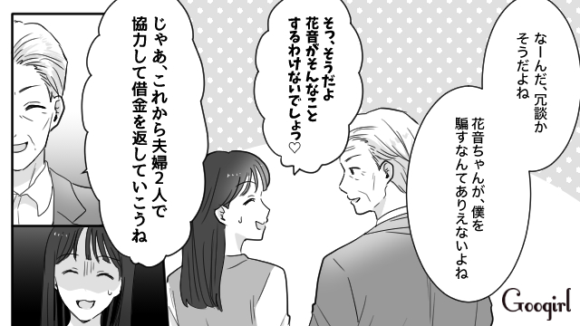 ▽ てっきり大豪邸に住んでいる大金持ちかと思ったら、借金まみれだった敏郎。しかし詐欺まがいのことをした過去を盾にされ、花音はなにも言えません。