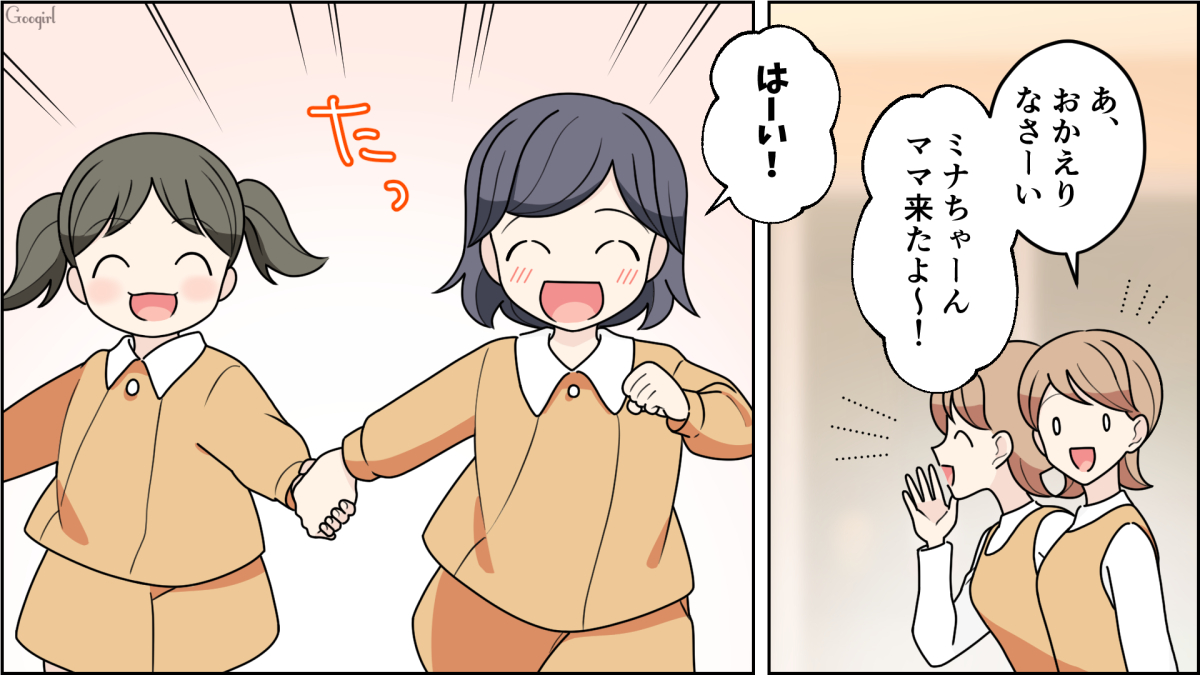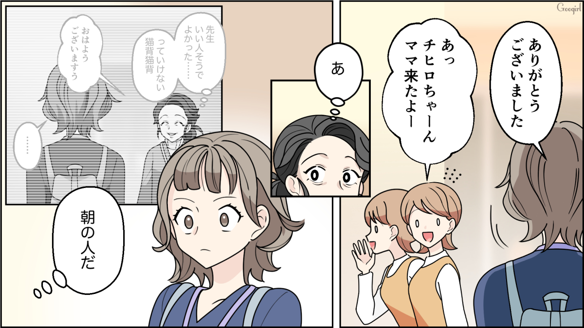▽ 保育園初日、ミナにはさっそくお友達ができたようです。朝すれ違った1人のママ、井上に挨拶するサナエですがスルーされます。ところがミナのママと聞いた途端、井上はサナエのことを「おばあちゃんじゃないんですね?」といきなり見下してきます。
