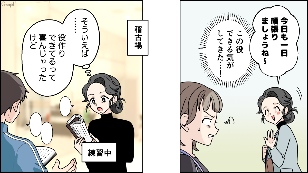 娘のミナと夫ユキトと暮らす舞台女優のサナエは「昭和の40代おばさんになりきれ!」という監督からの命令のもと、日常生活から役作りをしています。難しい役の分、よりリアルを追求すべく日々奮闘中!