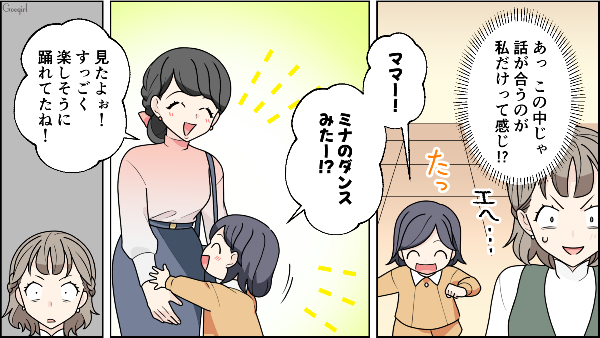 娘のミナと夫ユキトと暮らす舞台女優のサナエは「昭和の40代おばさんになりきれ!」という監督からの命令のもと、日常生活から役作りをしています。新しい保育園で、40代のママへ若さマウントを取る失礼な井上をしっかり注意したものの、それからマウントをあからさまに取られるようになってしまいます。とうとう公演が始まり、しばらくは夫と送迎が交代するので、しばらく会わないで済むと安心します。お遊戯会の招待状に書かれていたのは、一体何の日付なのでしょうか?